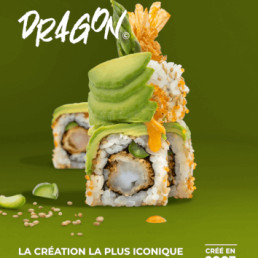Né en 2008, c'est l'ancêtre du Dragon ! De fines tranches d'avocat coiffent cette création au cœur délicatement garni. Conseil sauce : la spicy mayo apportera à merveille une petite touche pimentée. 6 pièces. COMPOSITION 6 PIÈCES Saumon Avocat Concombre Algue nori Mayonnaise Riz vinaigré Sésame